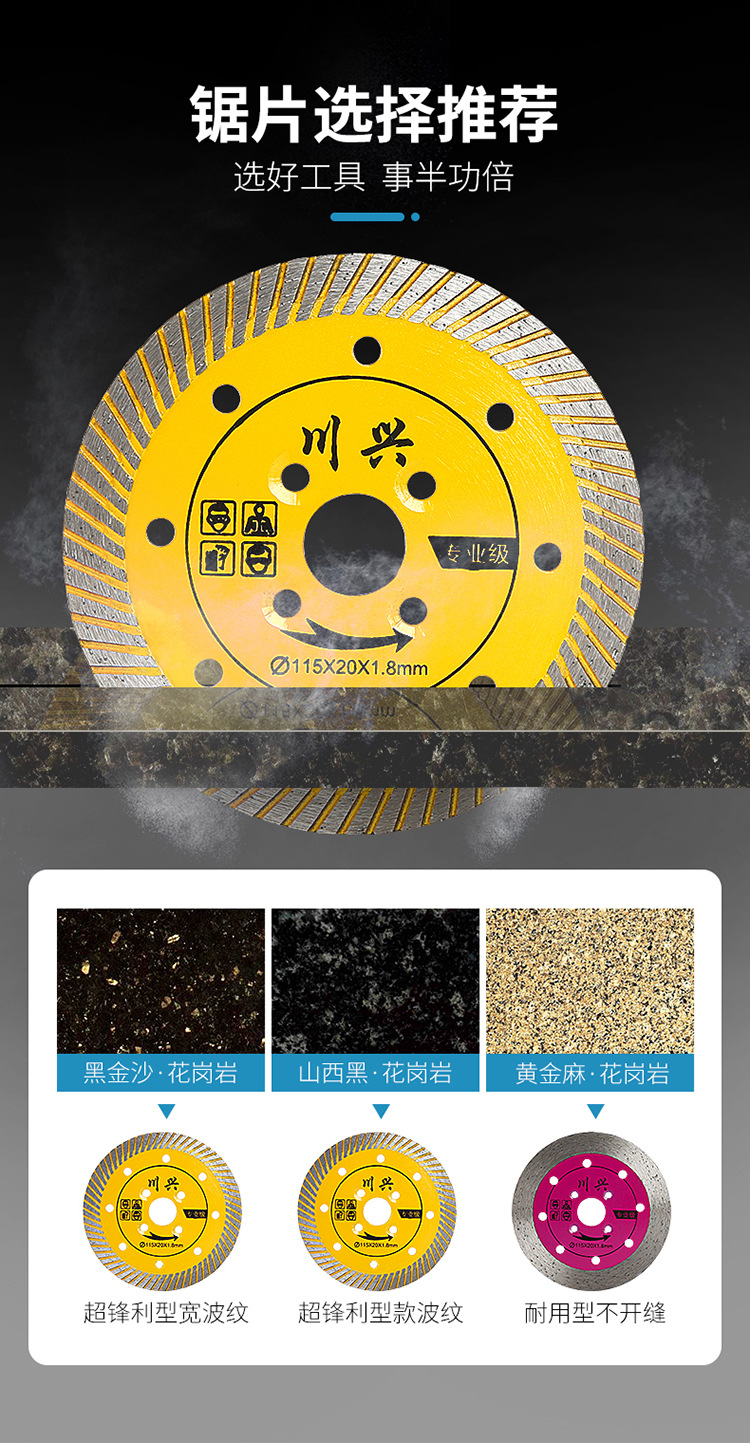 Pieza de corte de piedra Pared de granito ladrillo cemento de hormigón pared abierta ranura amoladora angular especial corte en seco hoja de sierra de diamante