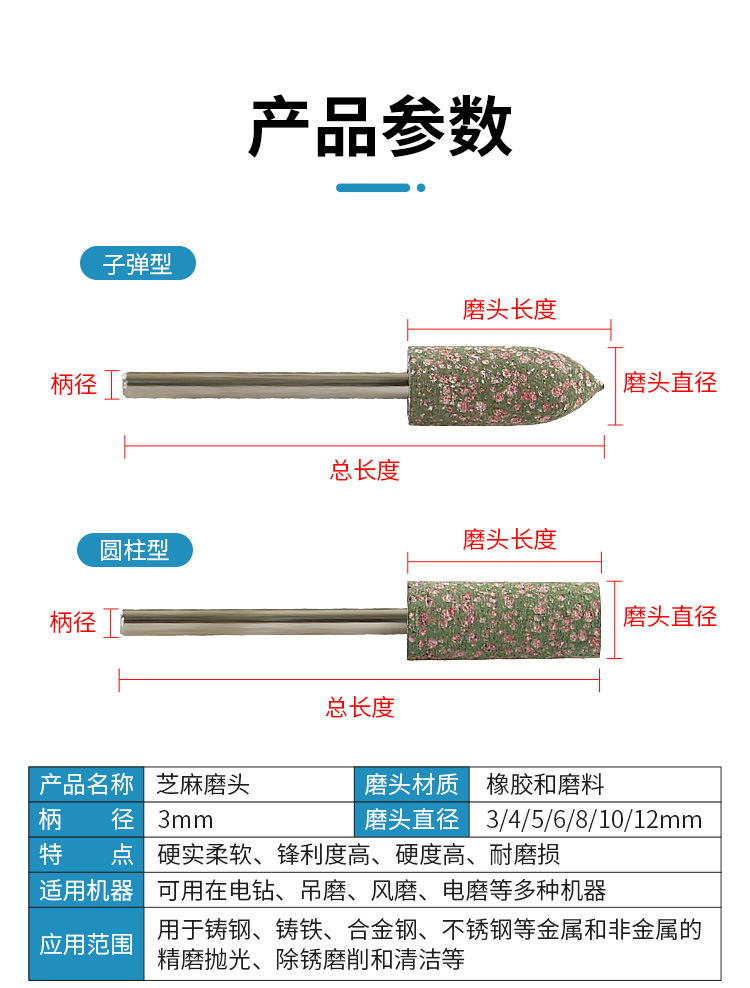 Sésamo pulido cabeza de pulido de goma de metal de acero inoxidable Jade molde pulido rueda de goma 3mm mango varilla de molienda