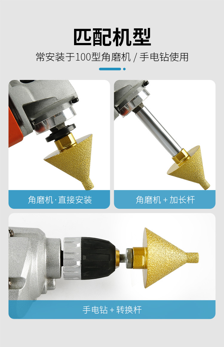Tallado de apertura de diamante, cono, nuevo cabezal de pulido, baldosas de cerámica, taladro de piedra de cuarzo Dali, taladro de amoladora angular