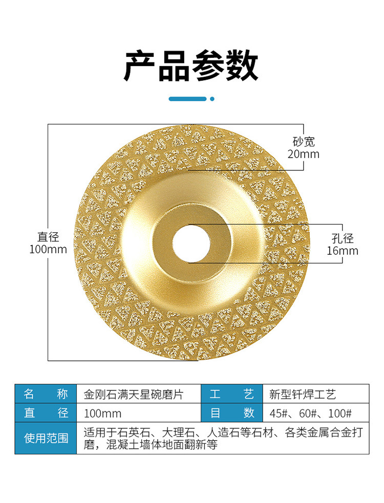 | Especificaciones | Disco de molienda Starry Bowl 45 #,Placa de molienda de tazón estrellado 60 #,Tazón estrellado de molienda pieza 100 # |