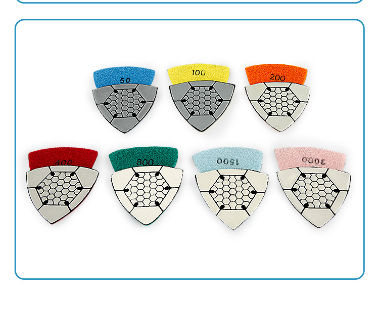 Diamante pieza de molienda en seco triángulo mármol piedra de cuarzo granito pulido y pulido universal tesoro piedra pieza de pulido en seco