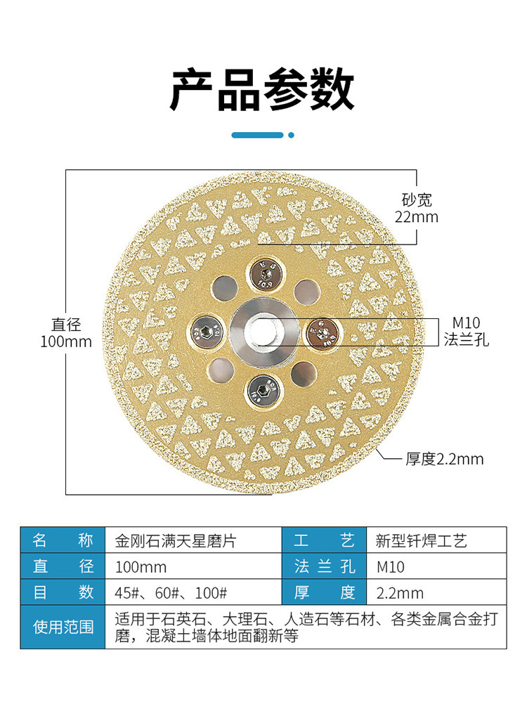 Diamante piedra estrellada de doble cara pieza de molienda mármol piedra británica reformada piso pieza de corte amoladora angular pieza de molienda