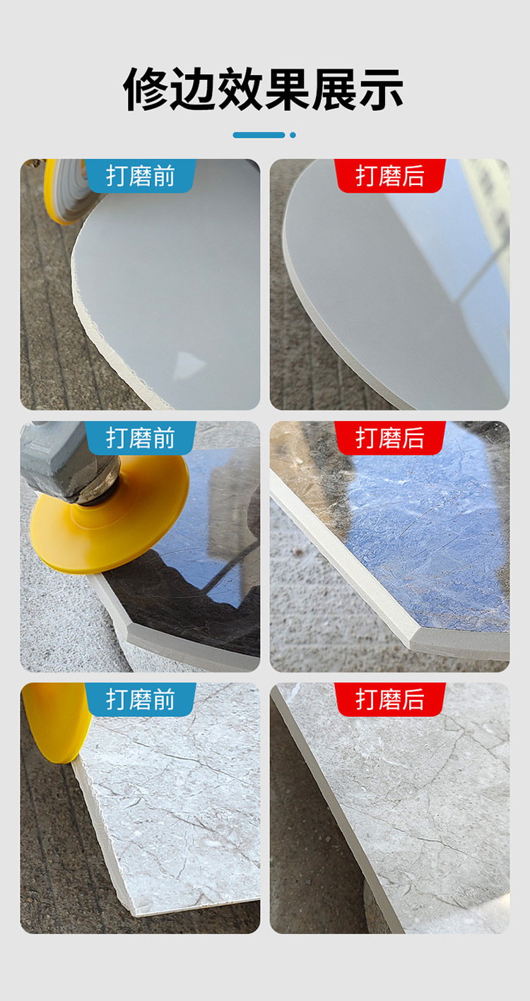 Escamas de pulido en seco de recorte de baldosas de cerámica, placa de roca, mármol de vidrio, biselado, artefacto de pulido de borde biselado, amoladora angular de hebilla, hoja de pulido