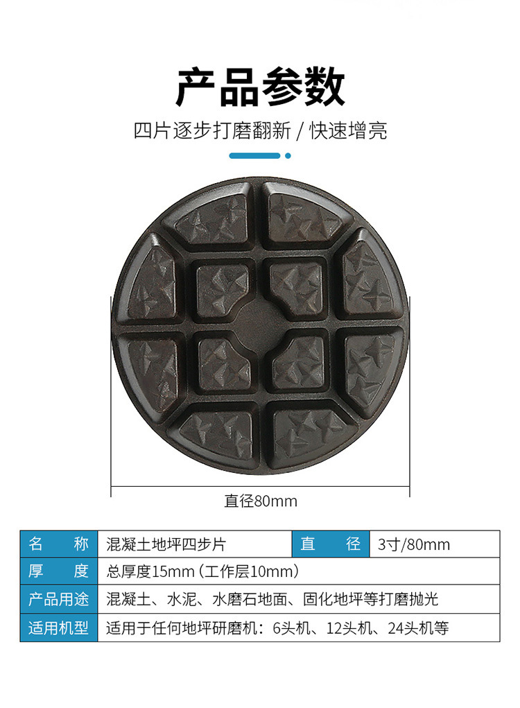 | Alcance DE LA APLICACIÓN | Molienda y pulido de hormigón, cemento, piso de terrazo, piso de curado, etc. |