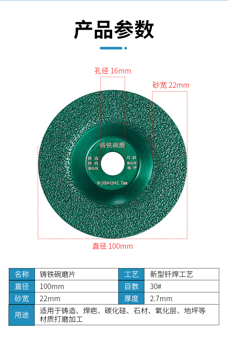 Soldadura fuerte de hierro fundido, piezas de fundición, pulido de metal, herramientas abrasivas, muela de diamante, placa abrasiva tipo cuenco, amoladora angular, placa de pulido
