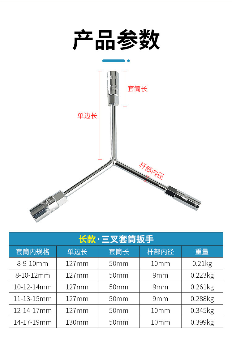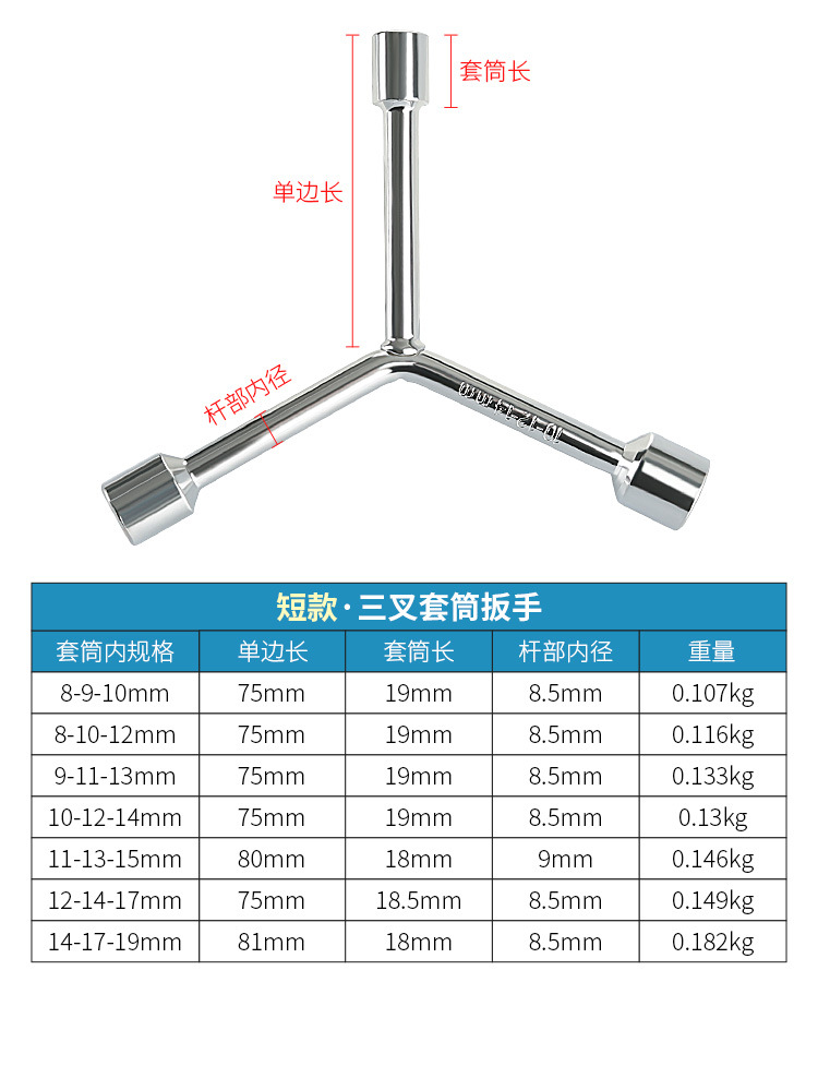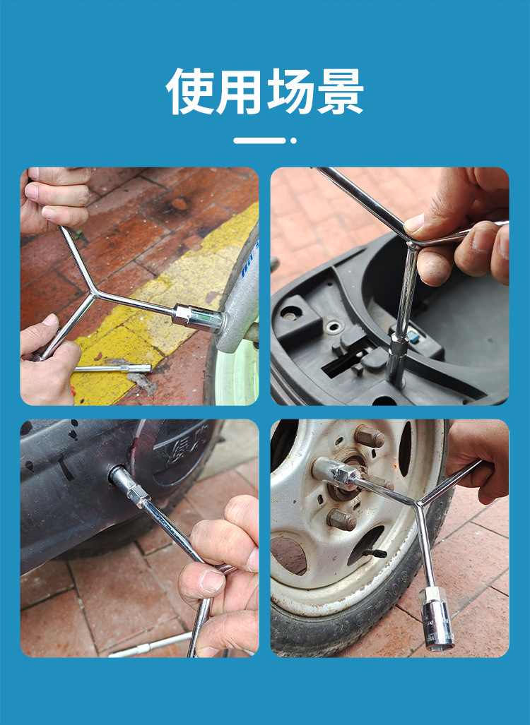 Llave de enchufe de tres horquillas alargada tipo Y triángulo multifunción coche motocicleta exterior hexagonal tornillo llave herramienta traje
