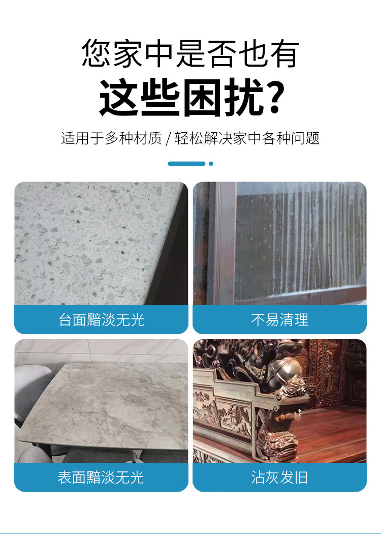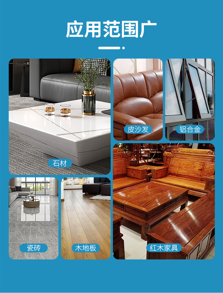 Ámbito de aplicaciónPiedra, azulejos, muebles de caoba, sofás de cuero, pisos de madera, aleación de aluminio