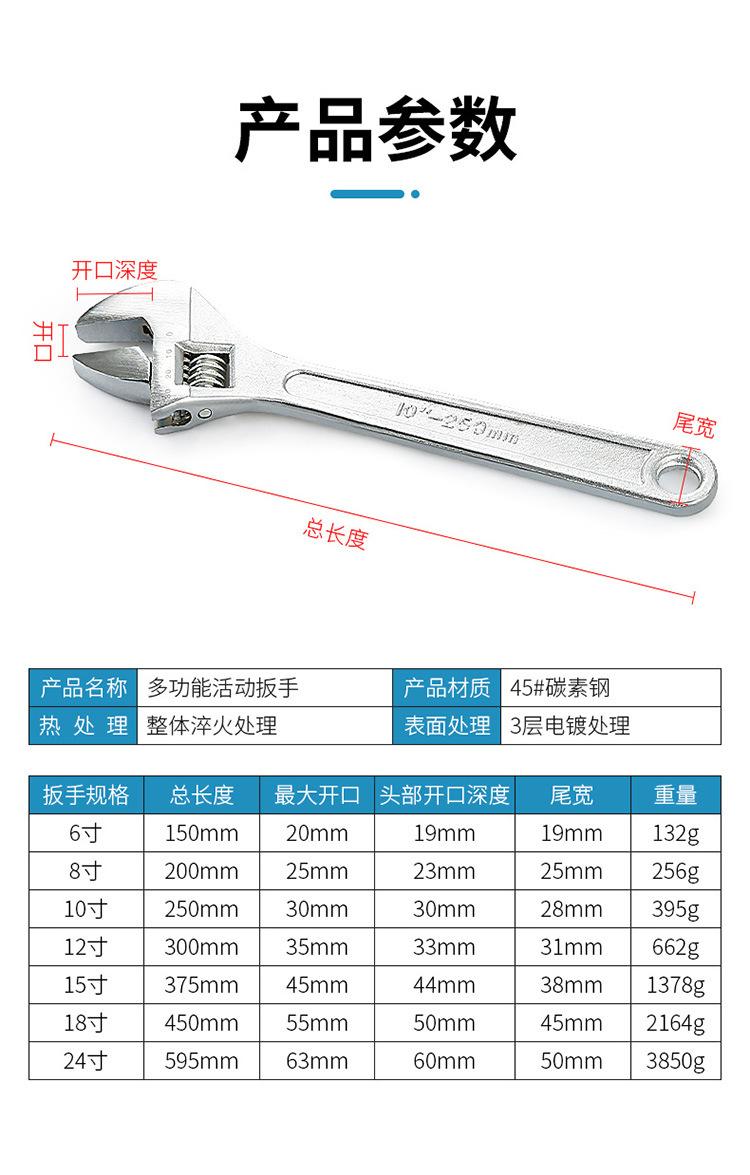 Colección de herramientas de llave ajustable universal llave ajustable multifuncional gran apertura productos genuinos llave pequeña llave ajustable tablero de llave