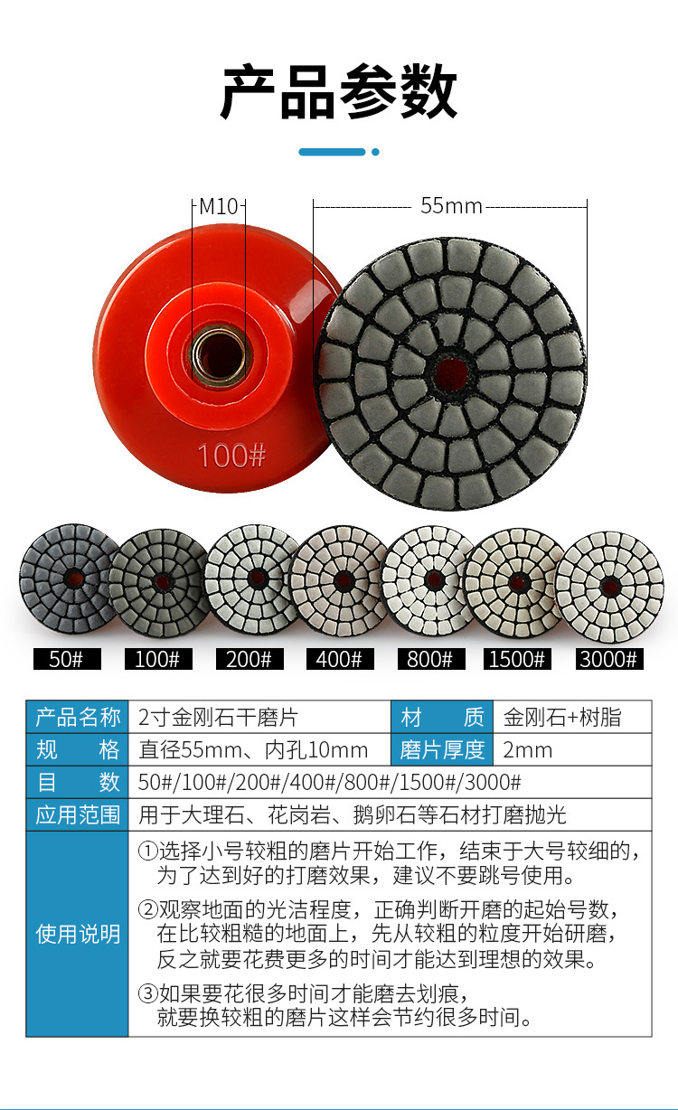 2 pulgadas 5cm piedra seca molienda pieza Dali cuarzo piedra pulido pequeño diamante seco pulido pieza amoladora angular pieza de molienda