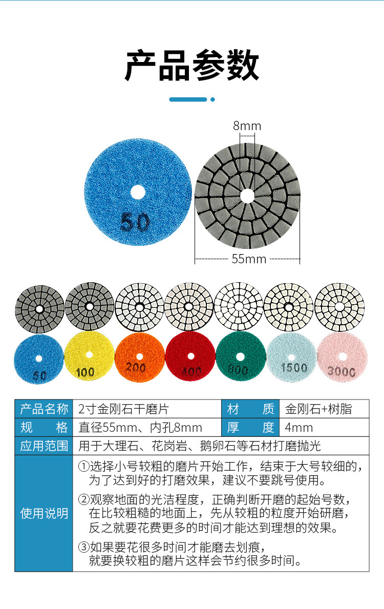 2-pulgadas 5CM de piedra seca pieza de pulido de mármol pieza de pulido pequeño diamante seco pieza de pulido de piedra en forma especial herramienta de pulido