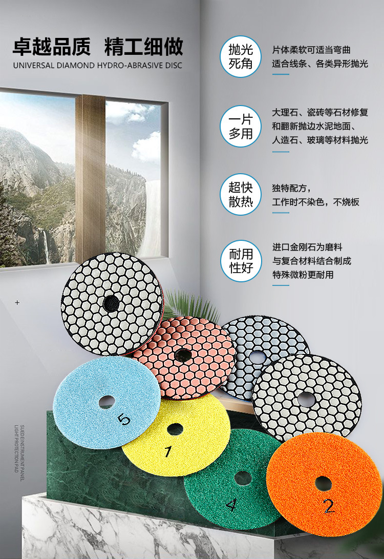 Disco de pulido en seco de piedra, disco de pulido de mármol, disco de pulido en seco de diamante de granito, disco de pulido de amoladora de esquina de recorte de azulejos de cerámica