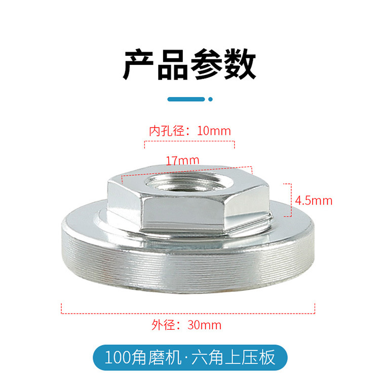 100 amoladora angular Placa de presión tornillo tuerca hexagonal máquina pulidora de madera contrachapada accesorios de modificación colección completa universal llave de glándula
