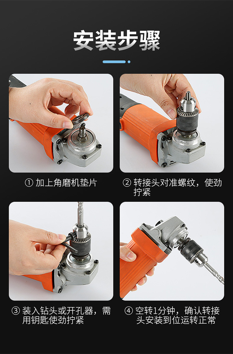 Amoladora angular taladro eléctrico cabeza de conversión Chuck máquina pulidora modificado taladro de mano multifuncional herramienta de corte Accesorios