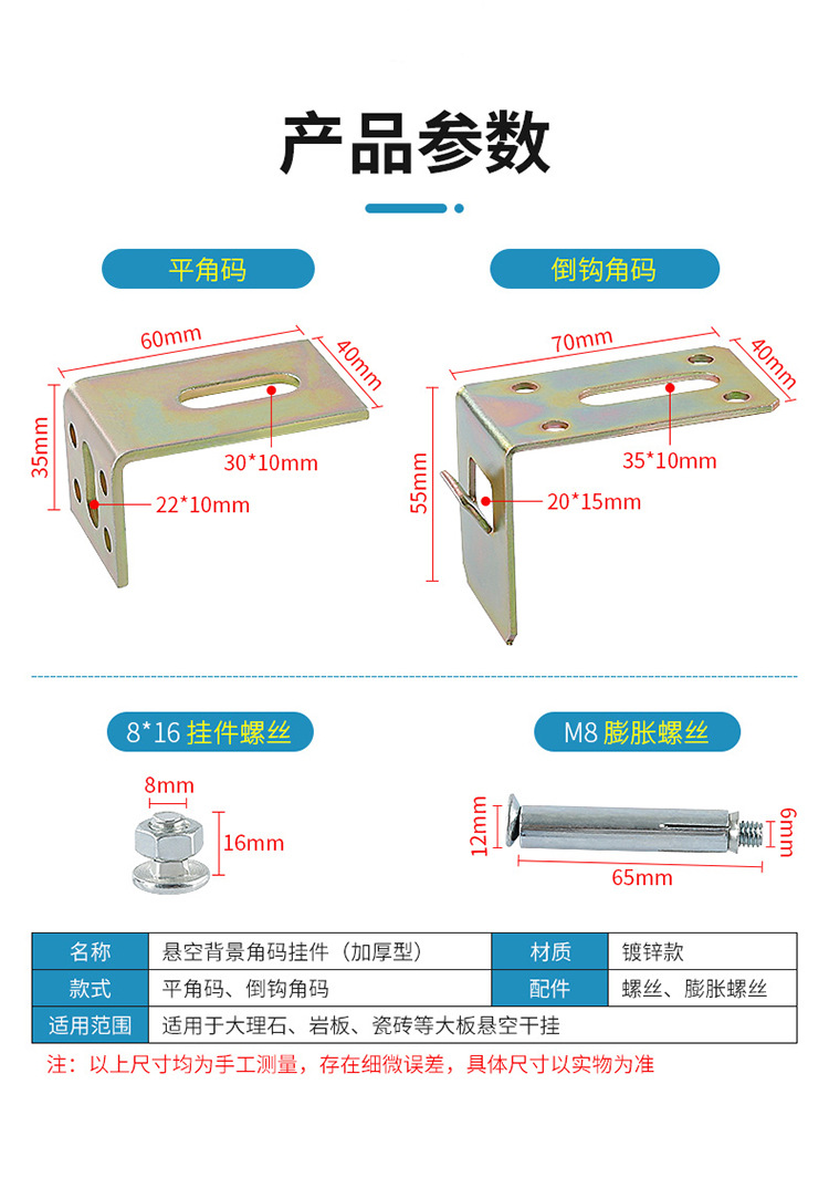 Colgante de pared de fondo seco colgante azulejo roca placa nuevo gancho Conexión de mármol ángulo de instalación código fijo Accesorios
