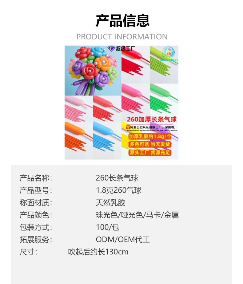 | Número de artículo | 260 globos largos |