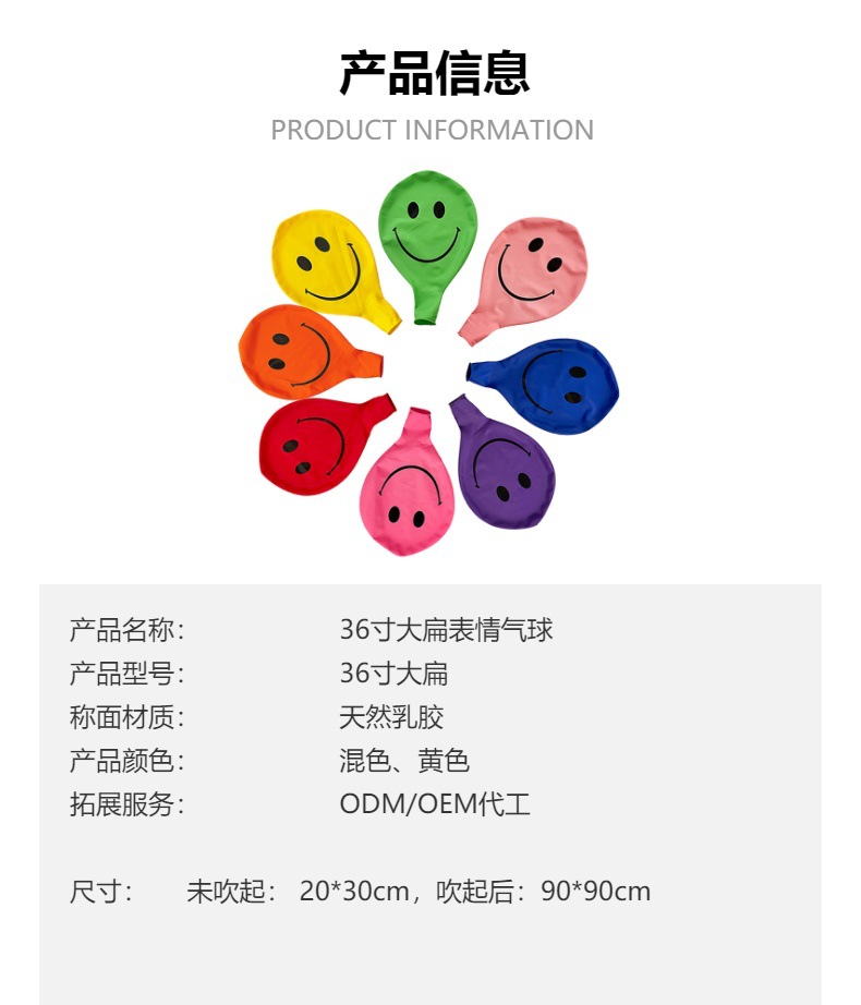 Globo de látex impresa de 36 pulgadas de belleza, decoración del mercado nocturno, diseño sonriente