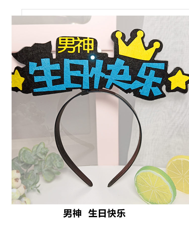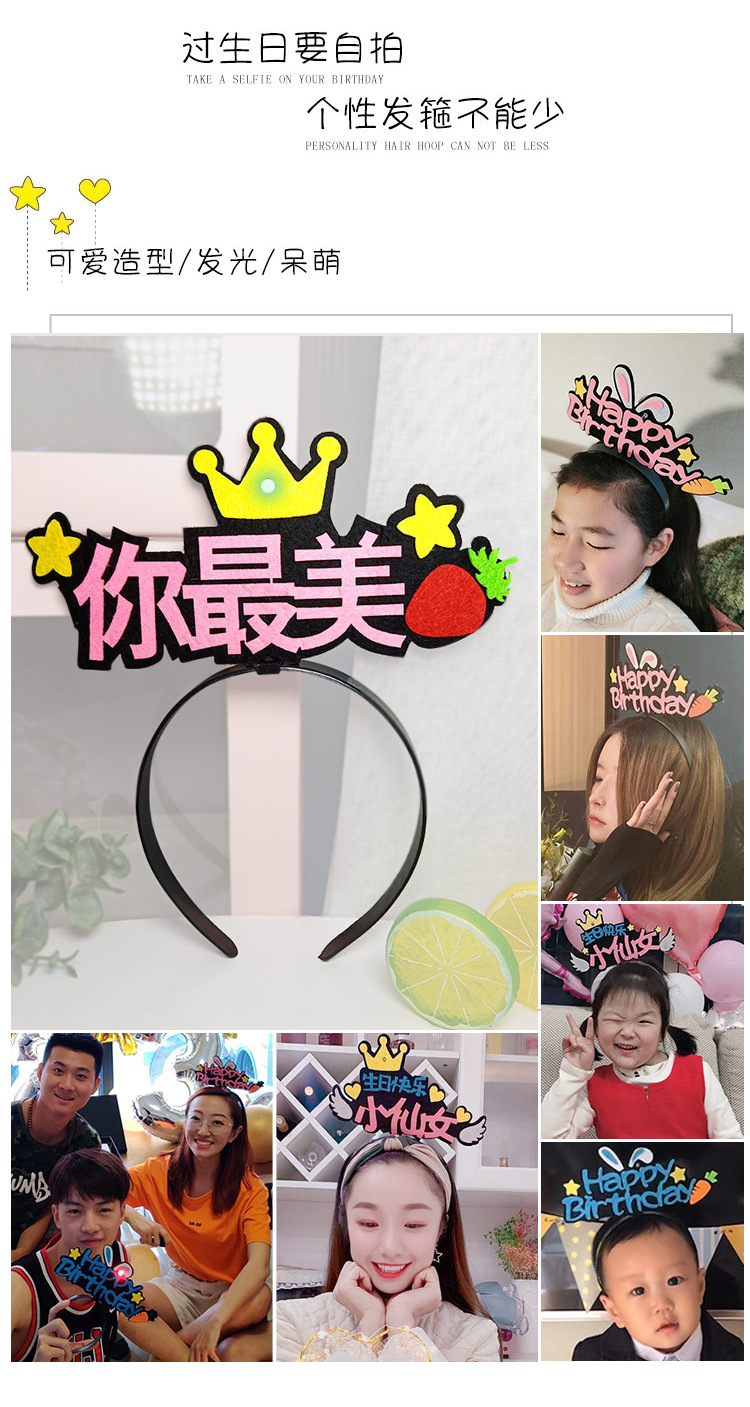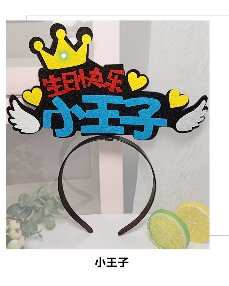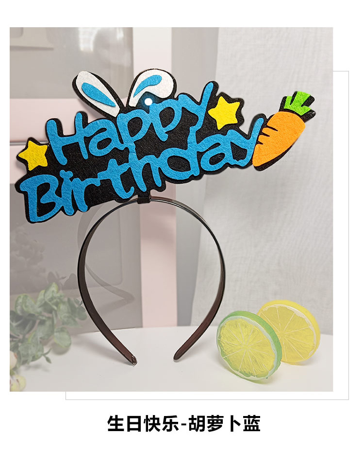 | Modelado | Diadema de cumpleaños [polvo de zanahoria Feliz cumpleaños],Pequeña princesa,Pequeño Príncipe,Eres el más guapo,Eres la más bella,Pequeña Hada,Wang soltero,Ventiladores,Diadema de cumpleaños [Feliz cumpleaños zanahoria azul] |