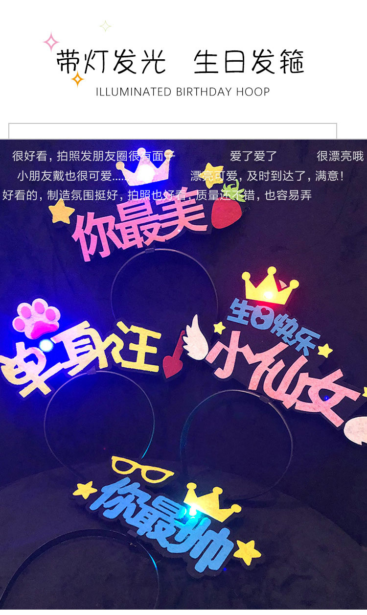 Feliz cumpleaños diadema creativa pequeña Hada Pequeño Príncipe diadema luminosa decoración del Partido de los niños años de edad apoyos suministros