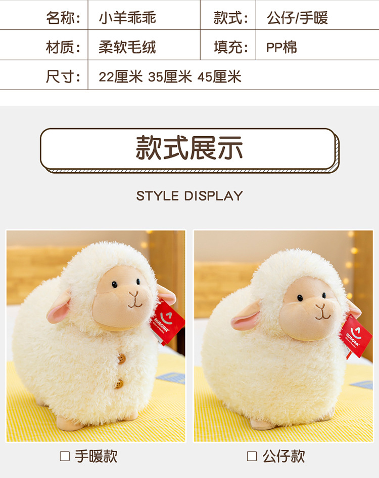 AURORA Muñeca de cordero Juguete de peluche Linda almohada de oveja Muñeca de trapo para niños Muñeca de bola de oveja Regalo de cumpleaños