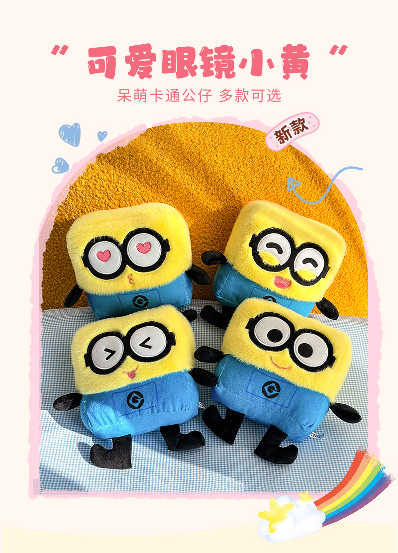 Nuevos lindos pequeños juguetes de peluche gafas mini muñecas amarillas de 8 pulgadas agarrar muñecas de peluche fabricantes de muñecas de peluche