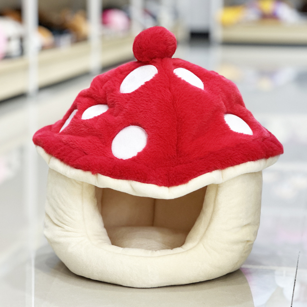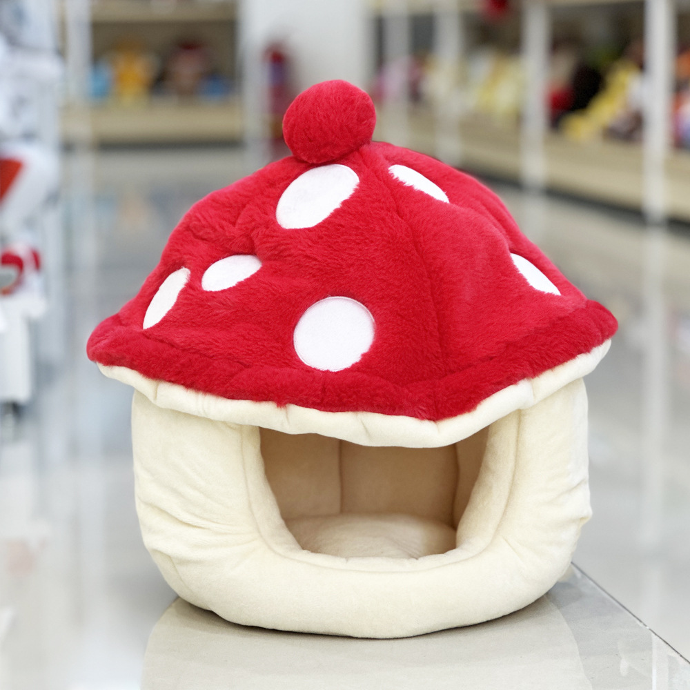 Nuevos productos transfronterizos, cálida guarida para gatos de felpa en invierno, linda guarida para mascotas con hongos, perrera semicerrada en invierno, guarida redonda en invierno