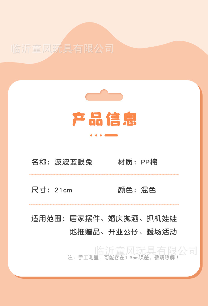 | Colores | Conejo de ojos azules Bobo sin orejas 21cm |