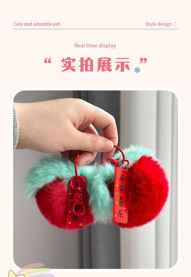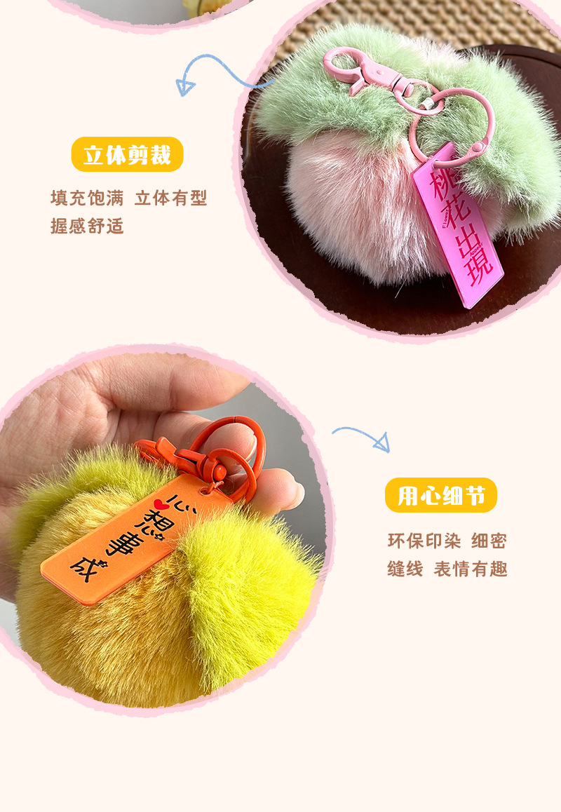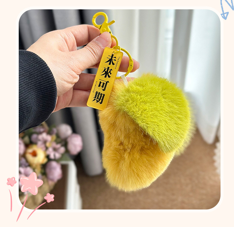 Imitación de piel de conejo rex, algo bueno sucede, hebilla, colgante de felpa, colgante de caqui, colgante de bolsa, colgante de felpa de frutas al por mayor