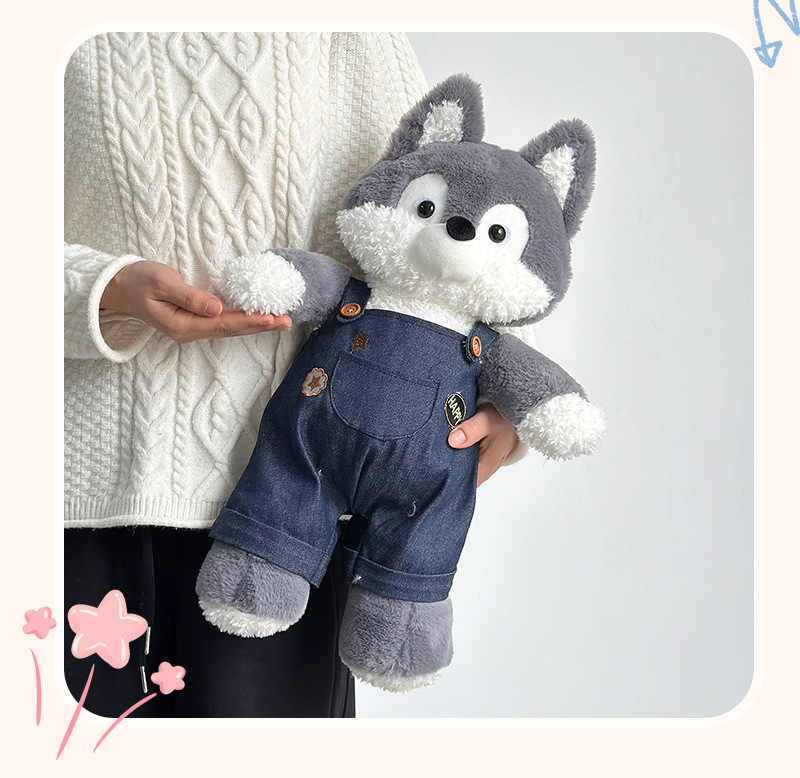 Correr transfronterizo bosque pequeño zorro muñeca linda lobo gris muñeca de peluche Husky almohada muñeca de trapo para niña