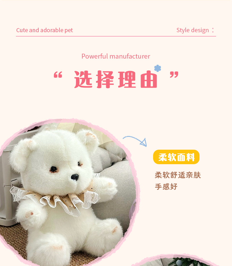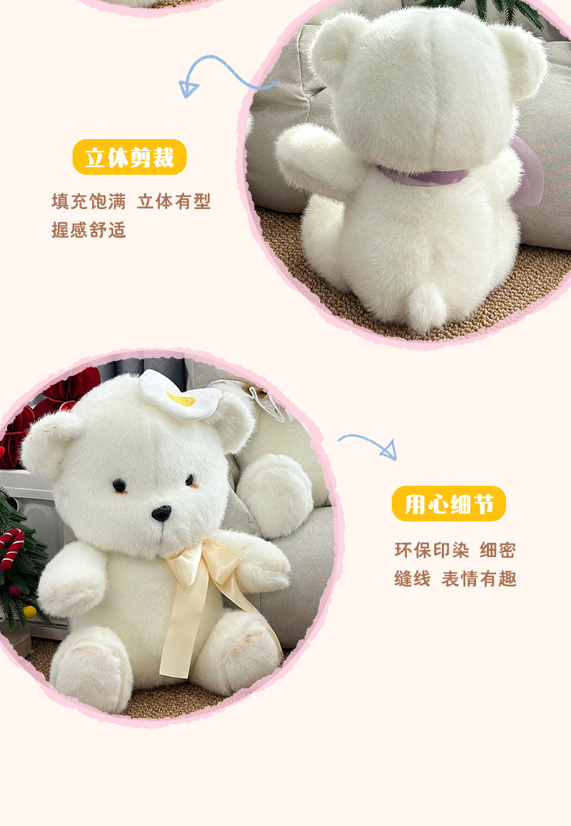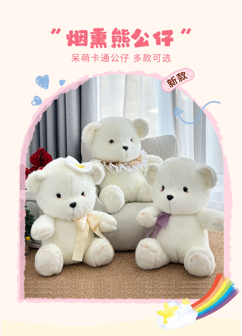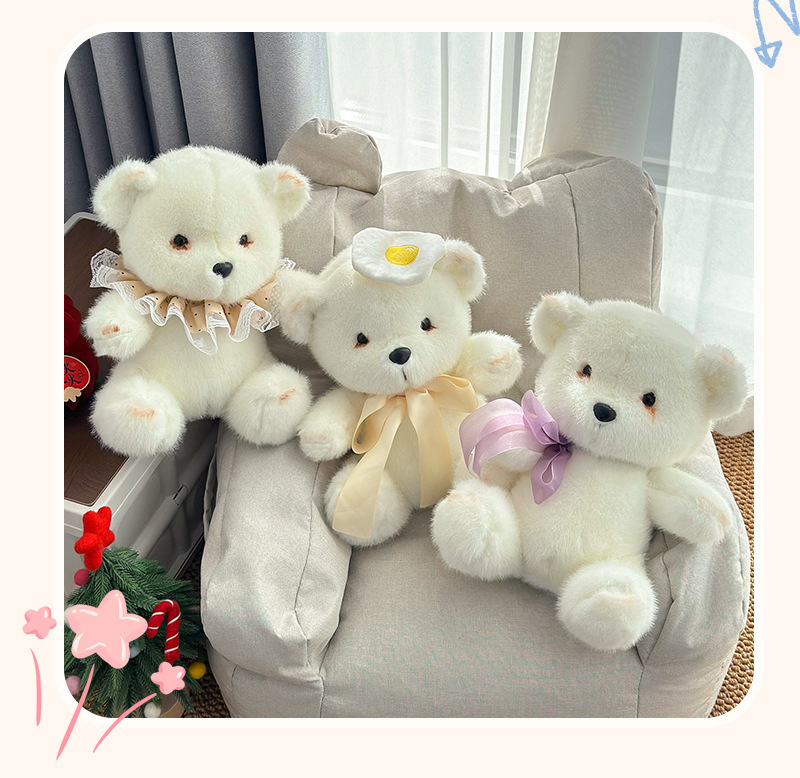 Nuevo pequeño oso blanco sentado muñeca arco de marioneta fumegante muñeca de oso juegos de video ciudad muñeca de peluche grande juguetes al por mayor