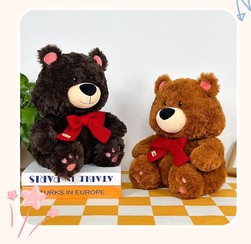 Caricatura adorable Teddy Bear muñeca red bufandas de peluche de dos colores 8 pulgadas agarrar juguetes de peluche al por mayor