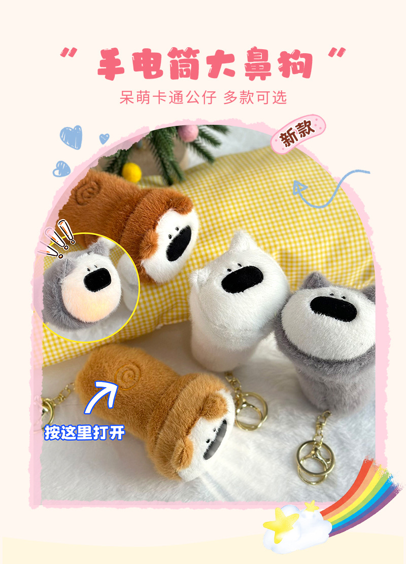 Linterna perro nariz grande cachorro felpa linterna llavero muñeca creativa linterna de felpa luminosa