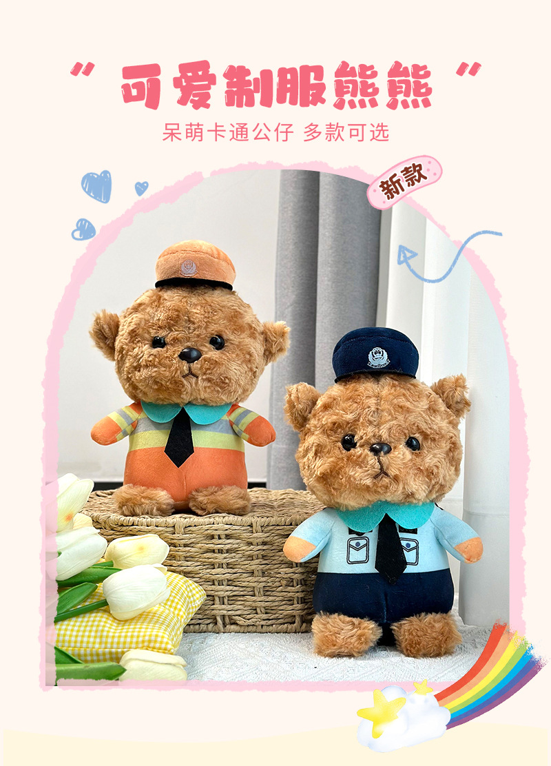 Policía de tráfico oso juguete de peluche de ocho pulgadas muñeca máquina muñeca flujo de boda arrojar muñecas al por mayor