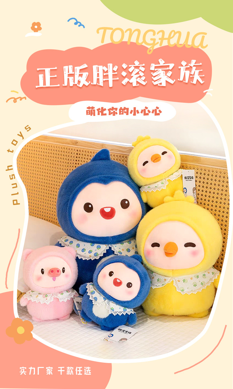 Muñeca de la familia de rollos gordos genuinos, lindo juguete de peluche, pingüino, regalo de cumpleaños para niñas y niños, muñeca de regalo de vacaciones