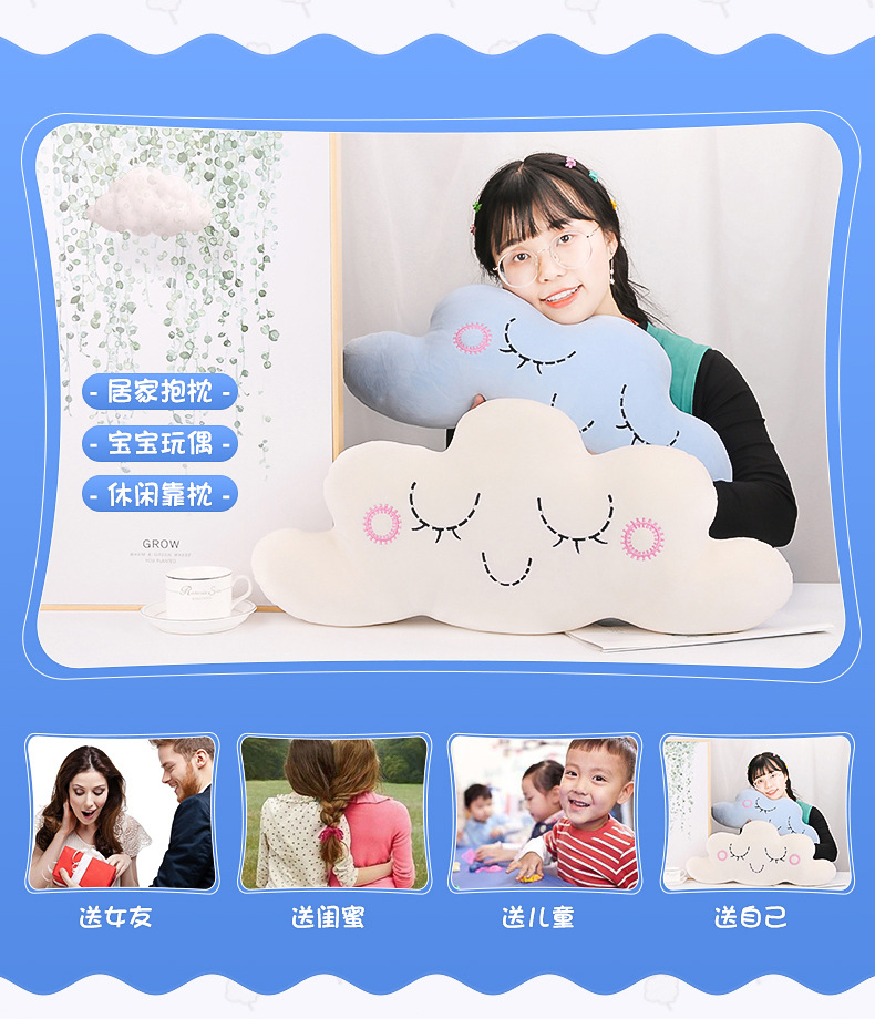 Linda nube almohada cojín de dibujos animados almohada para dormir regalo almohada sofá cojín chica fábrica al por mayor