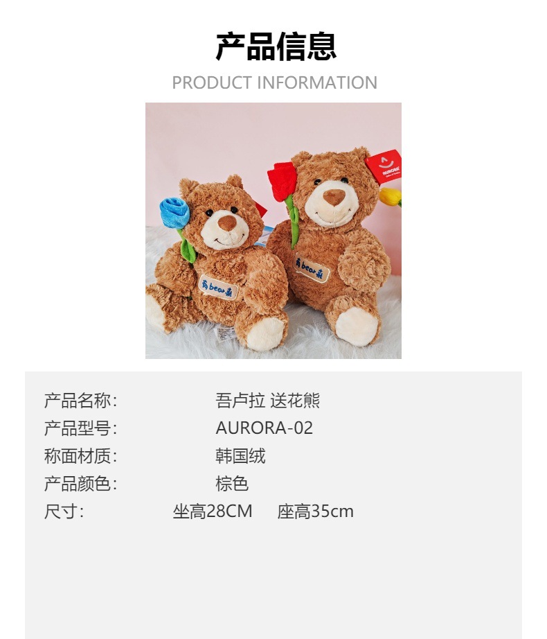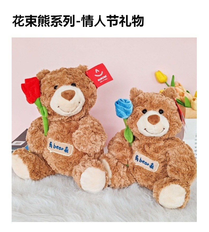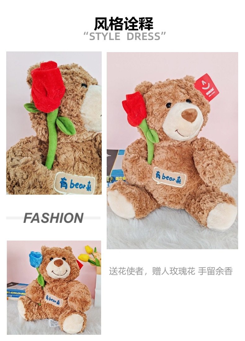 Caja de regalo, muñeca de oso con sombrero, muñeca de oso de peluche, juguetes de peluche, flores, regalos de cumpleaños para chicas, transfronterizos