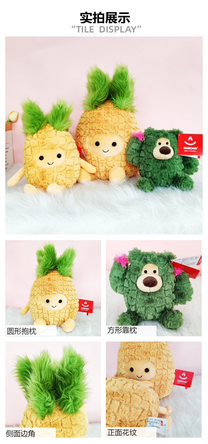 Aurora simulación piña cactus almohada peluches lindo hogar fruta muñeca decoración del hogar grande