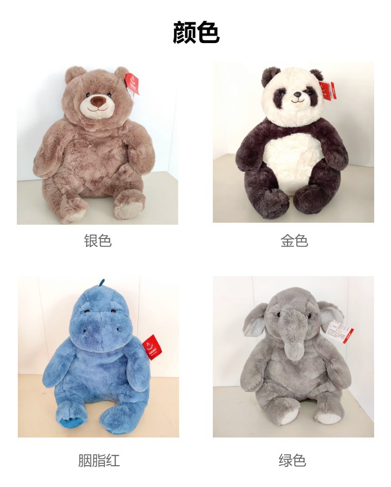 | Colores | Oso marrón claro,Dinosaurio azul pavo real,Elefante gris |