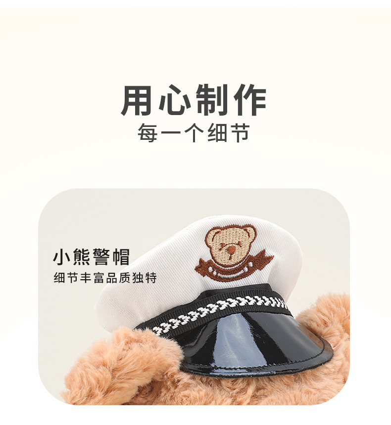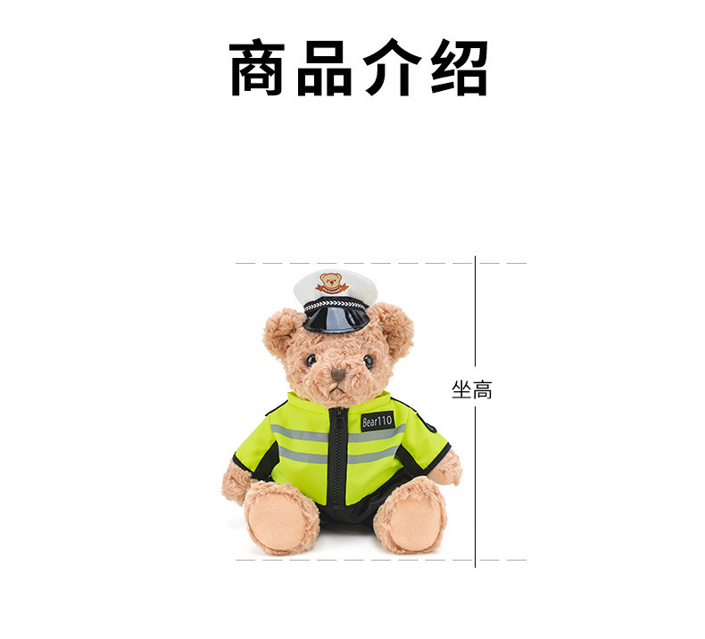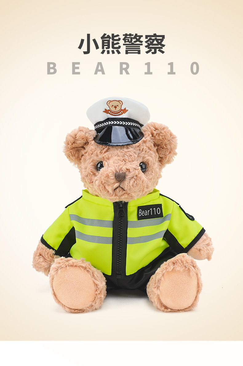Oso de Peluche de Policía de Tráfico para Abrazar, Vestido con Ropa y con Gorro, Peluche de Oso Policía, Muñeco Infantil, Regalo para Niño