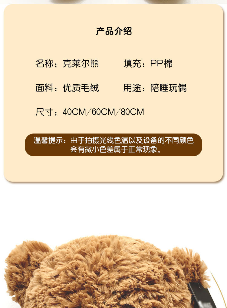 Bebé abrazo Claire oso de peluche muñeca lindo oso de peluche de juguete para dormir almohada muñeca transfronteriza al por mayor