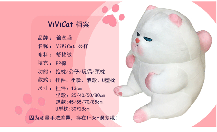 Vivicat gato muñeca peluche muñeca lazy gato perezoso almohada para dormir colgante respaldo cintura regalo de cumpleaños