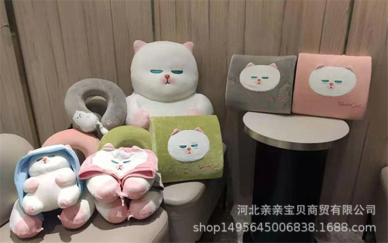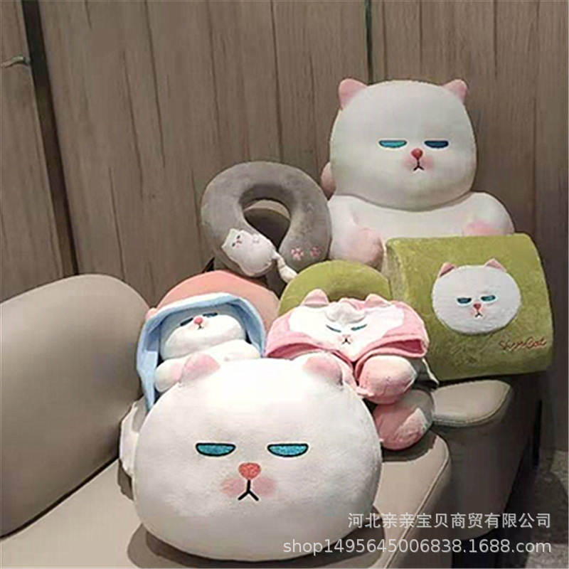 | color | Almohada gato perezoso 36*34 cm,Adornos de gato 13 cm 54g,Almohada en forma de U azul,Almohada U con capucha |