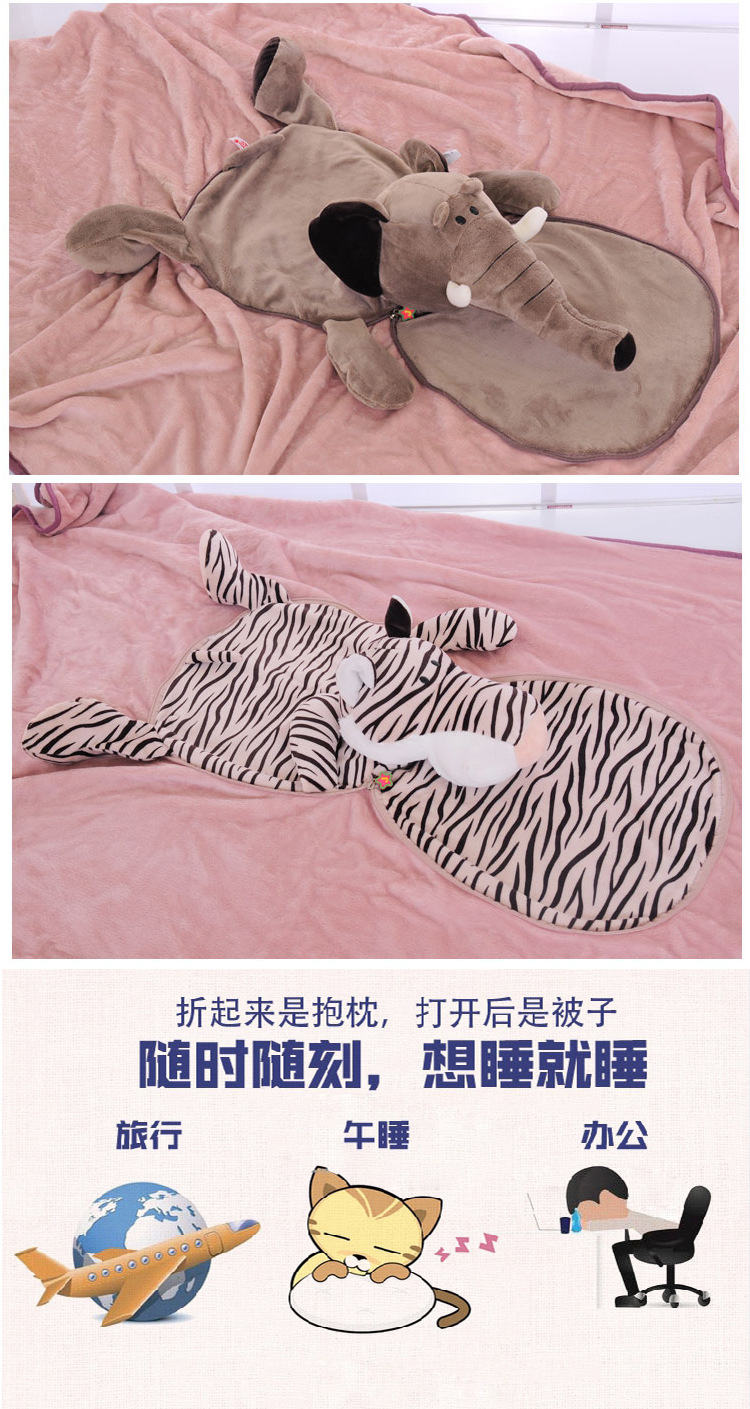 Almohada de Peluche con Diseño de Animal de Dibujos Animados, Manta Multifuncional Dos en Uno para Aire Acondicionado, Oficina, Siesta, Auto