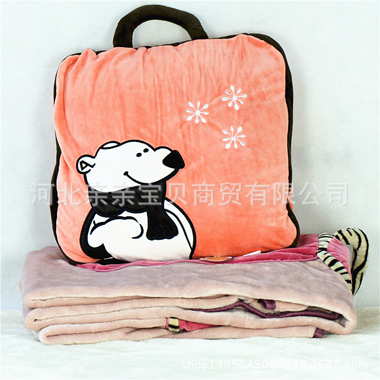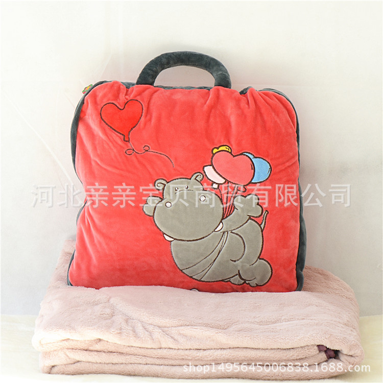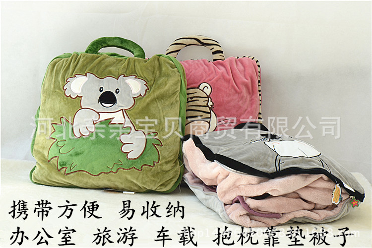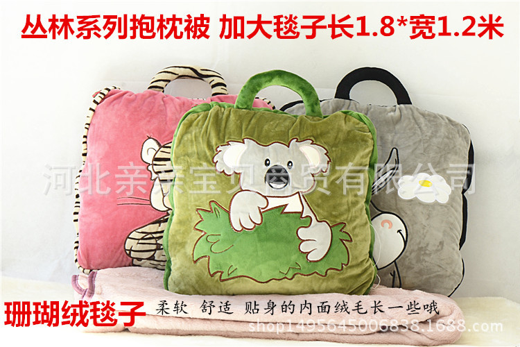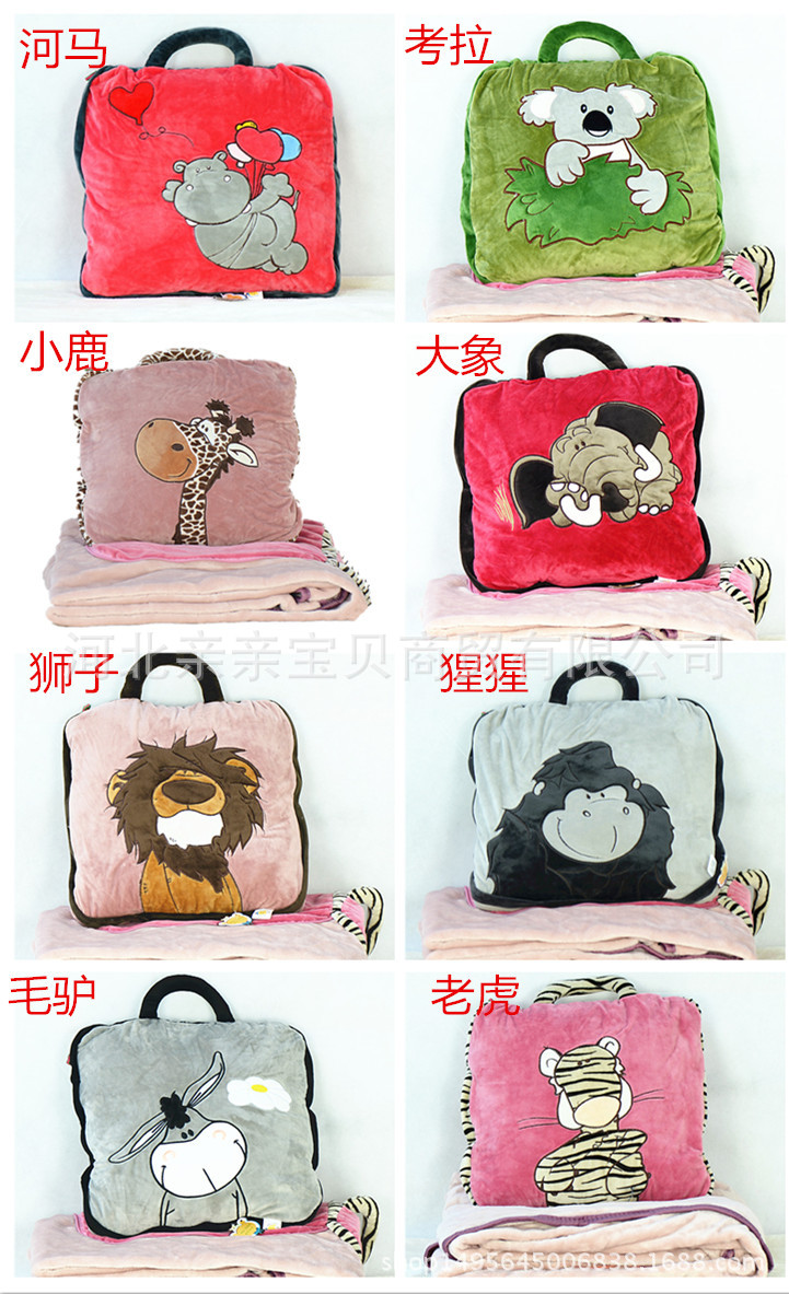 Animal de dibujos animados almohada edredón de doble uso aire acondicionado edredón siesta manta multifuncional coche viaje almohada plegable edredón al por mayor