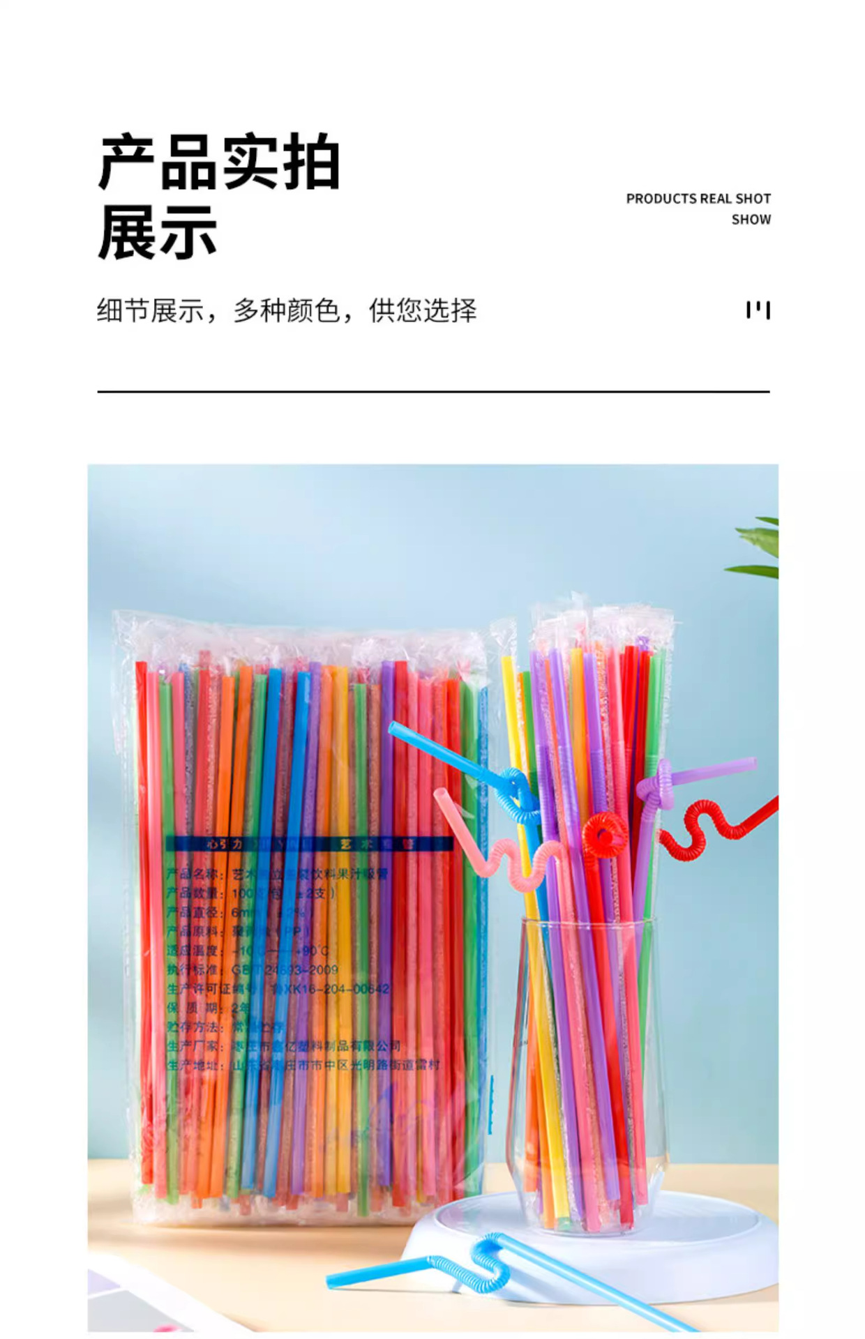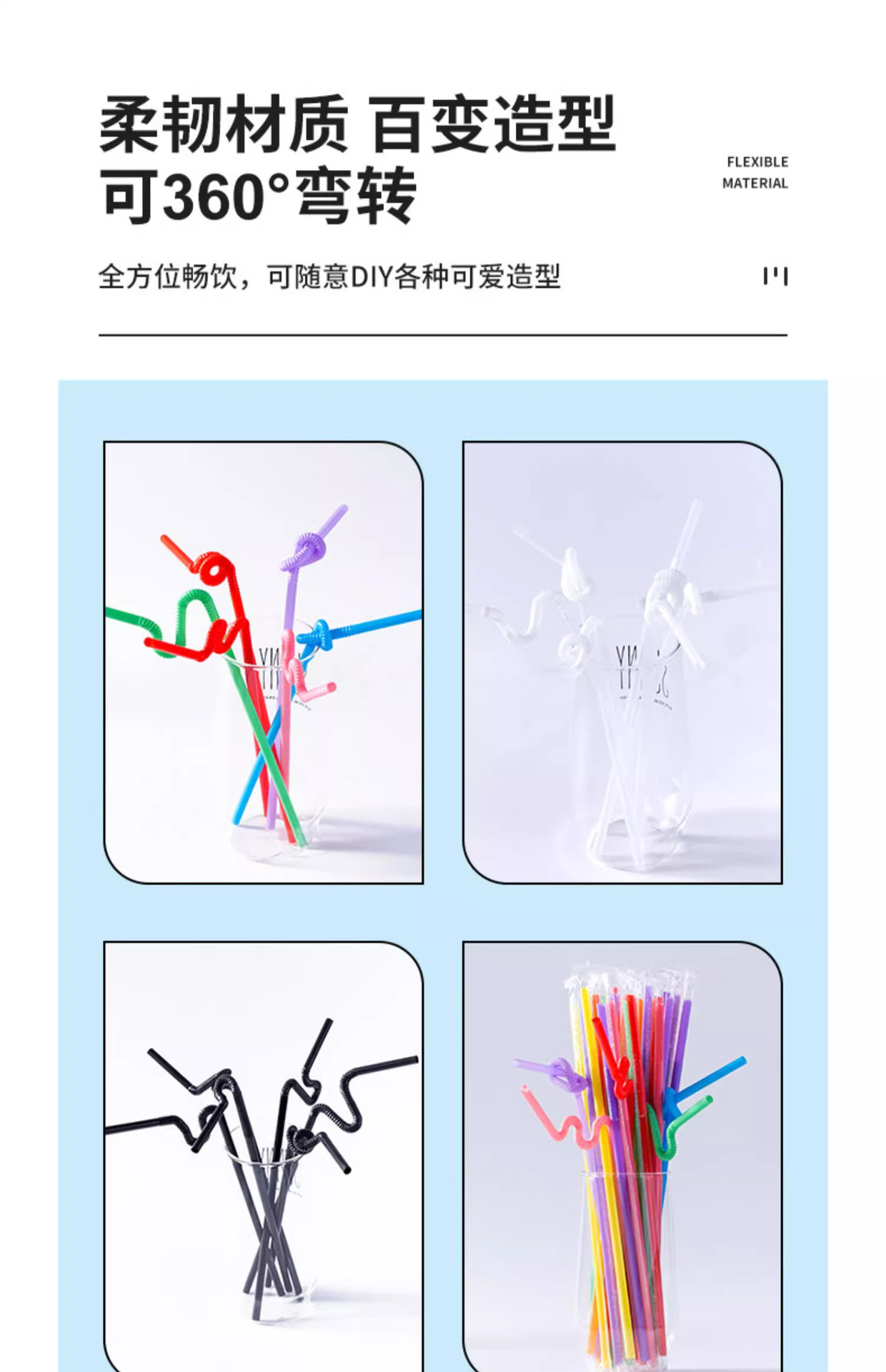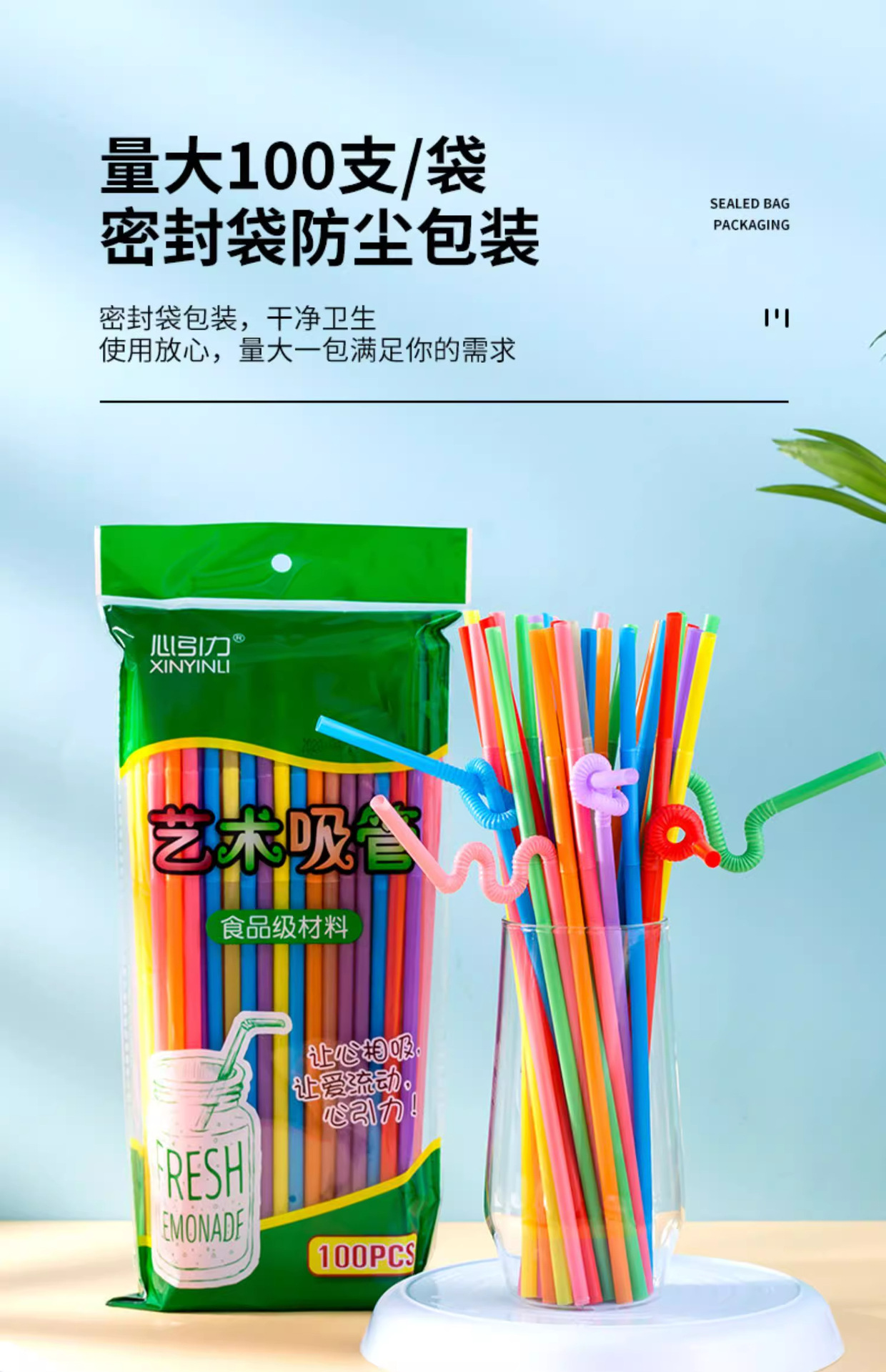 Pajita larga de arte de embalaje independiente desechable Pajita de jugo de té con leche de bebida de color curvo único