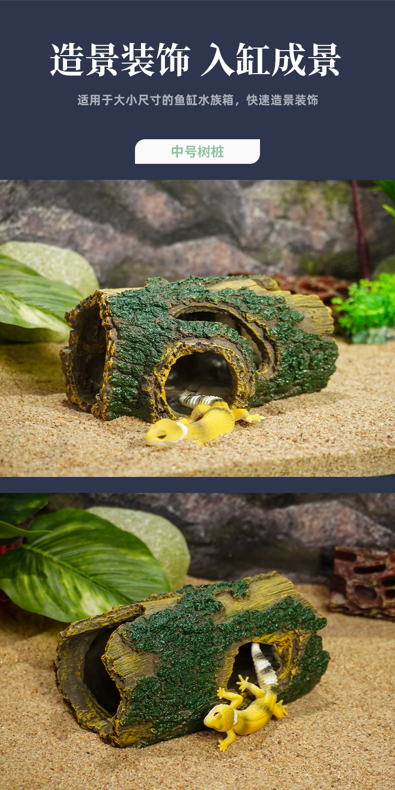 Decoración para Peceras, Cueva de Escondite, Simulación de Corteza de Árbol, Cueva de Resina, Agujero Hueco en el Árbol, Tronco de Árbol, Casa de Escondite para Reptiles, Peces y Camarones
