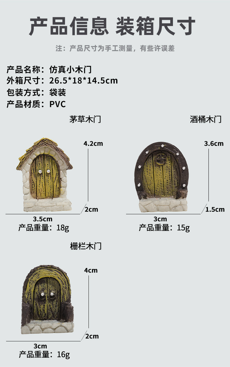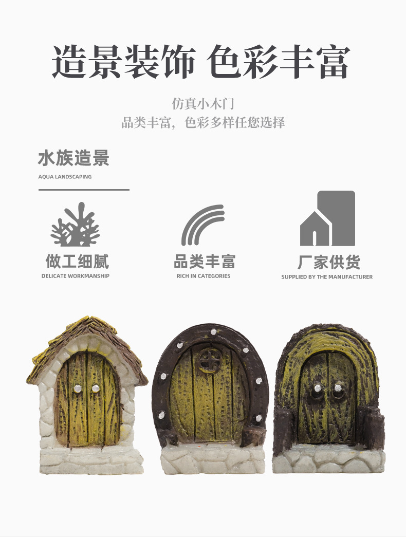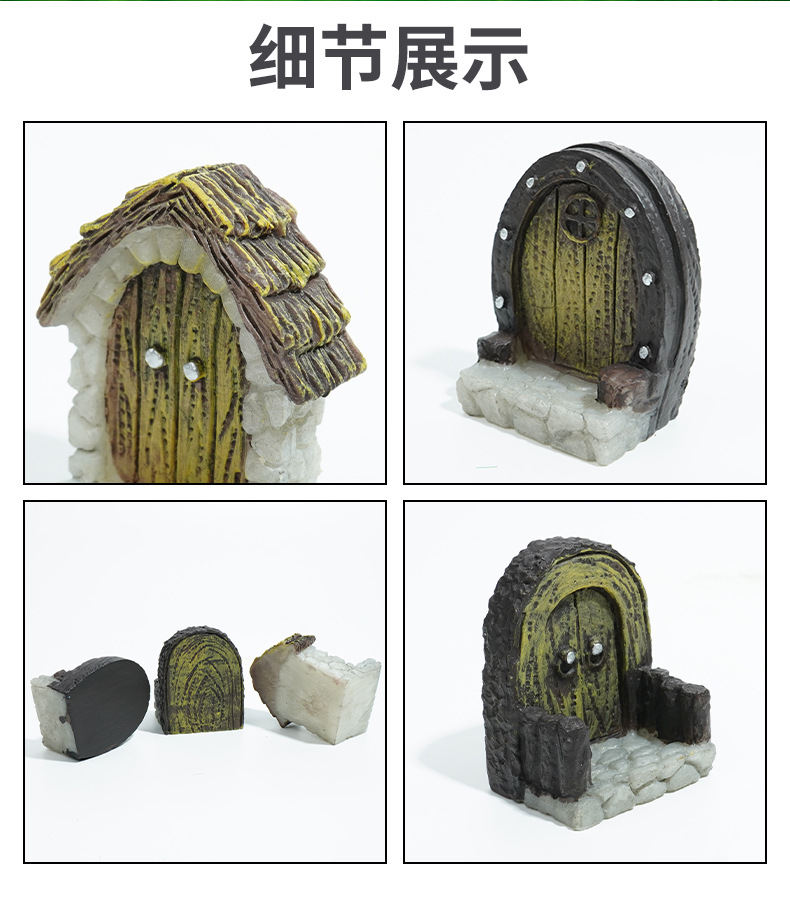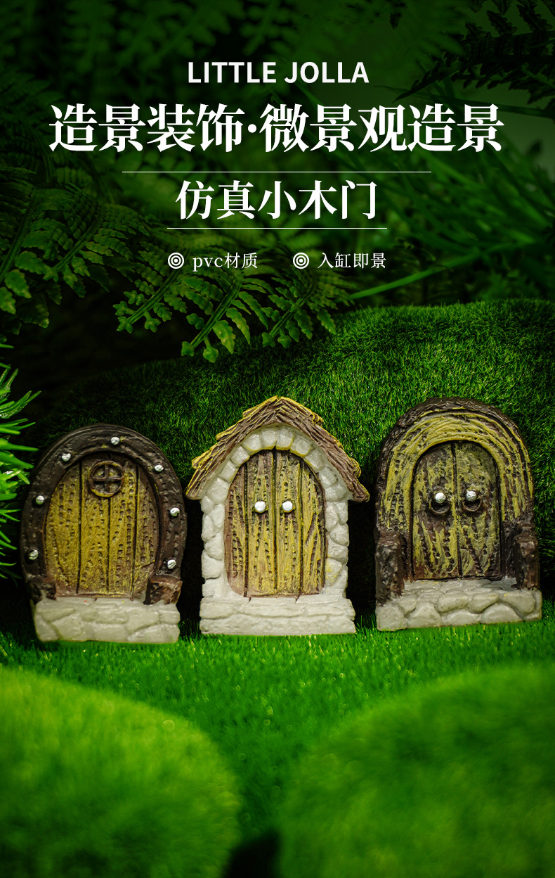 Puerta de hadas pequeña, puerta de madera hecha de material duradero, material de decoración de micropaisaje de musgo, material de decoración para peceras pequeñas.