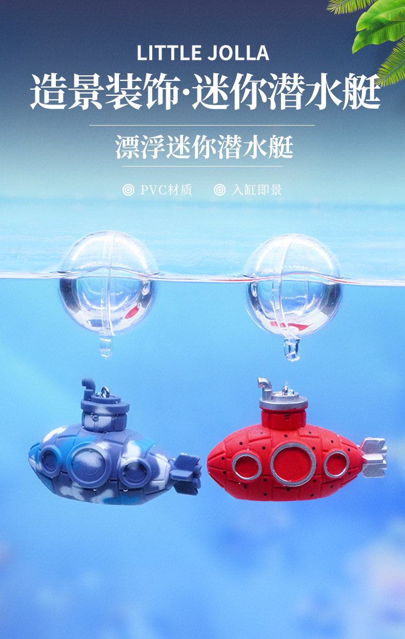 Mini submarino flotante azul – decoración de pecera y paisajismo acuático, figura de buzo decorativa