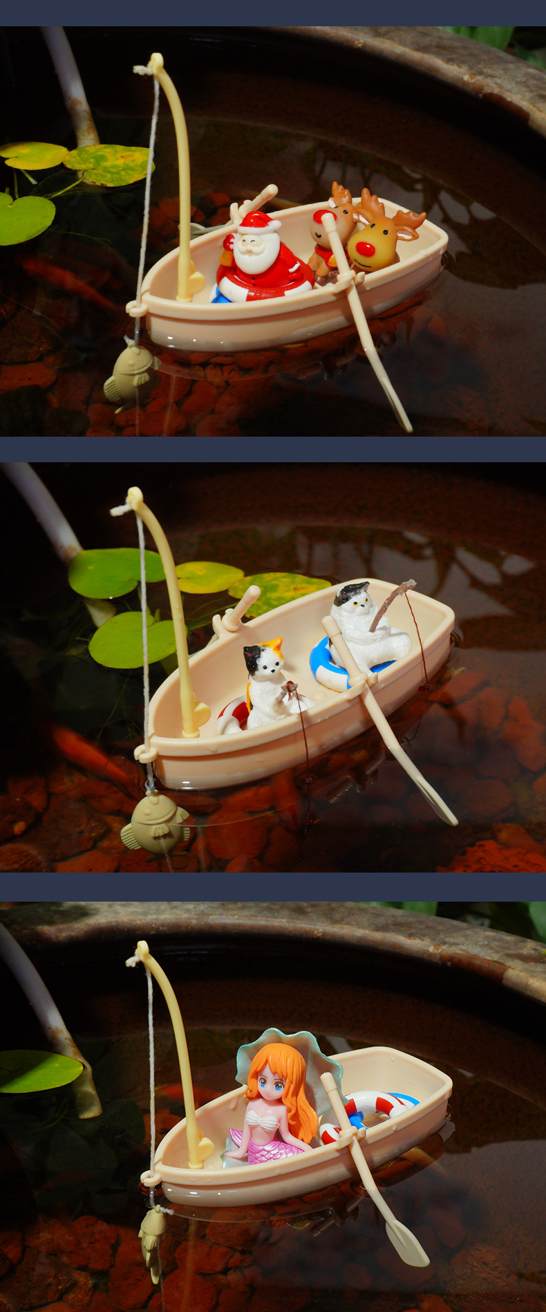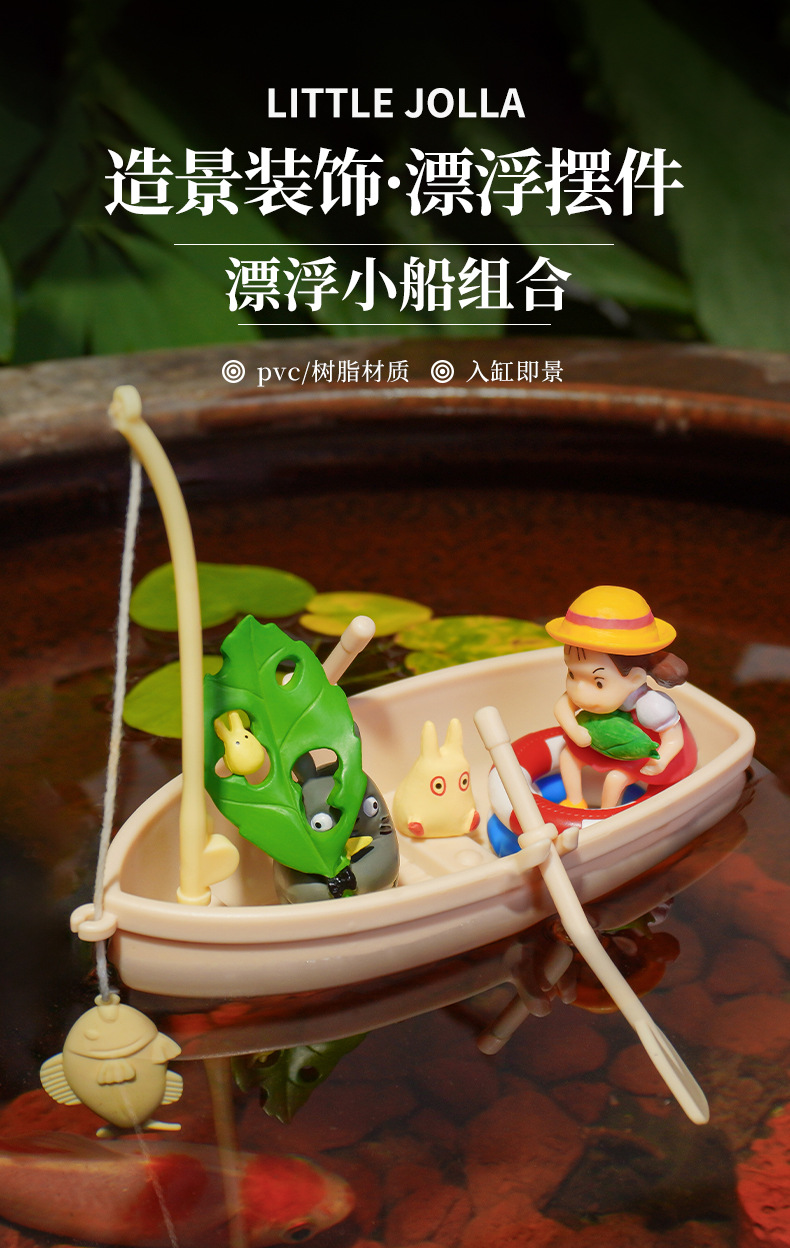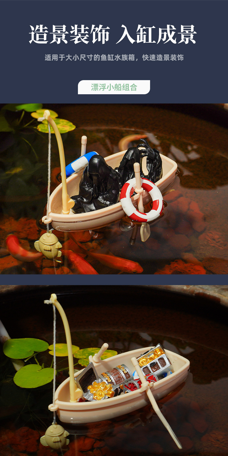 Miniatura de barco flotante, anillo de natación, barco de pesca, decoración para pecera, juguete de micropaisaje, bricolaje transfronterizo