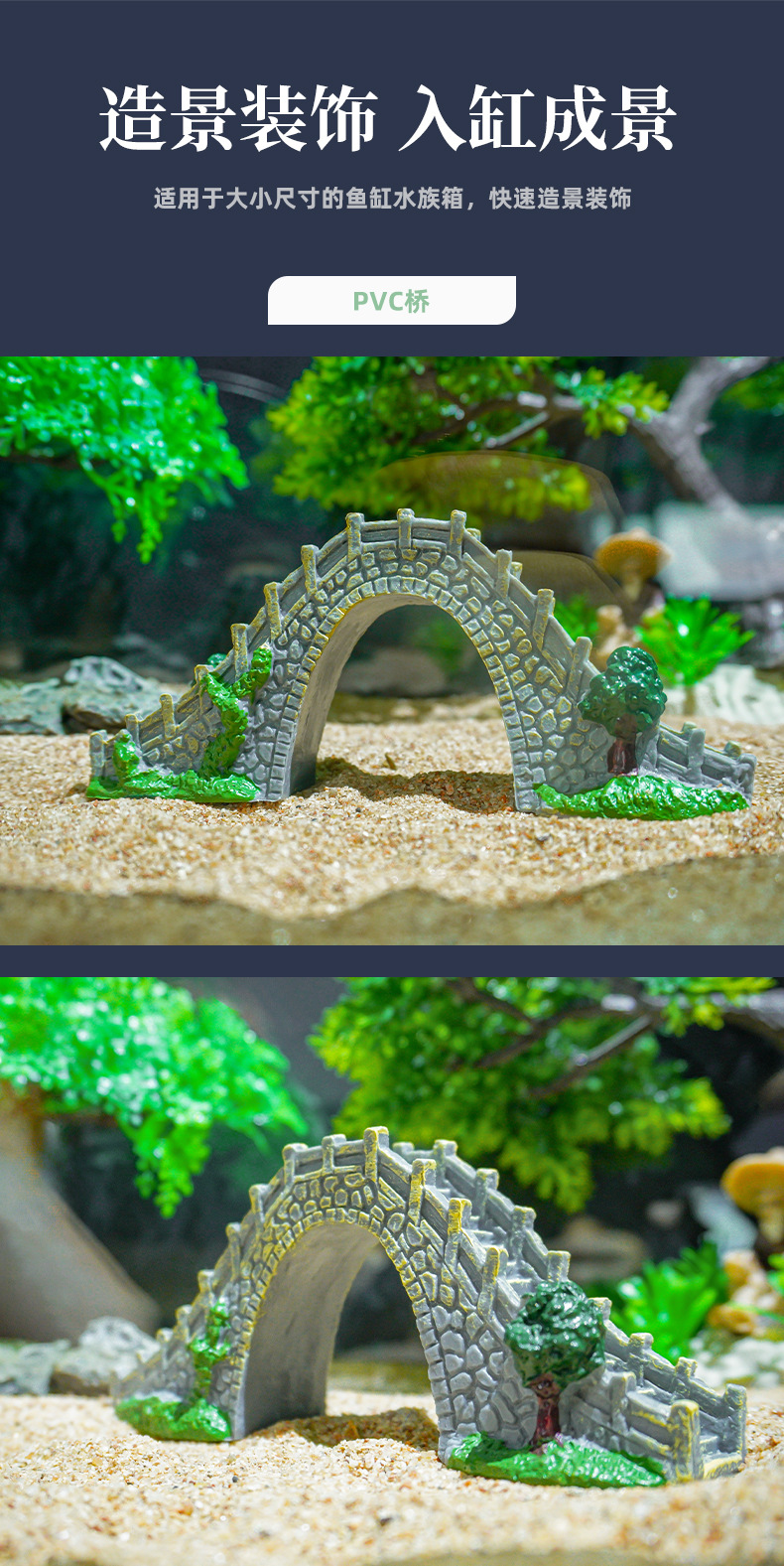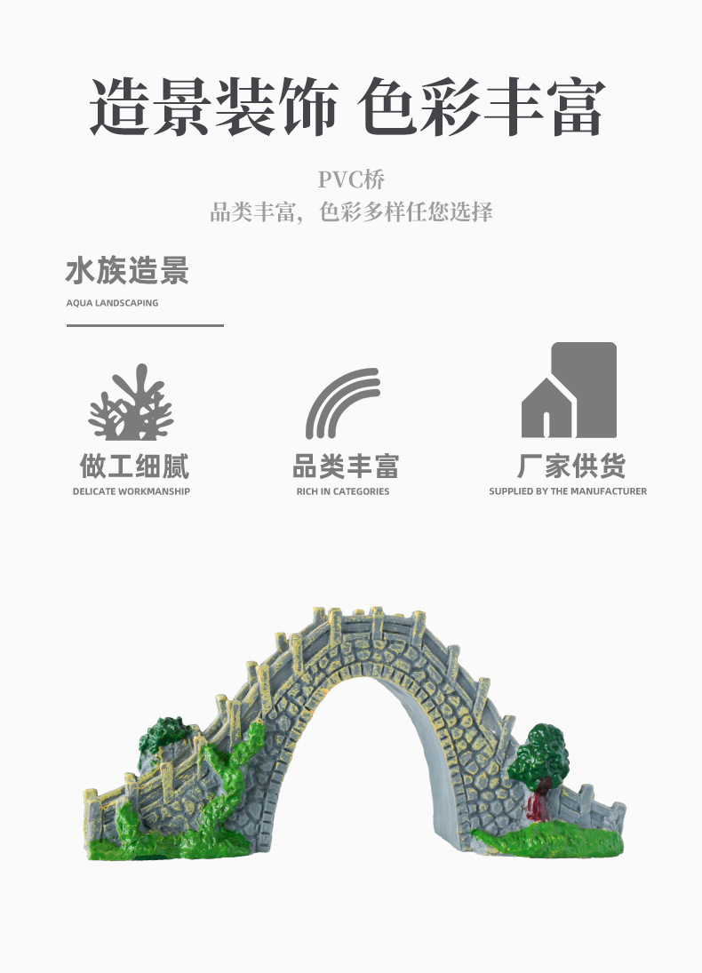 Nuevos adornos de bonsái de puente de piedra, micro-paisaje para peceras, puente de arco único de PVC, puente pequeño de estilo arquitectónico antiguo al por mayor