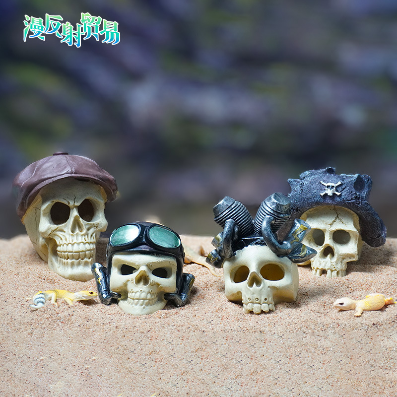 Pecera, acuario, calavera, decoración de paisajismo, casa de cría, evitar trepar, caja de mascotas, pirata, estilo caliente con capucha